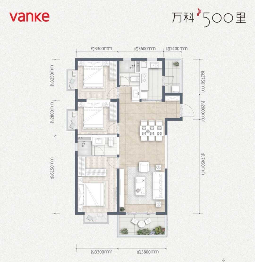万科500里一期(A7地块) 3室2厅 120平米 169万出售