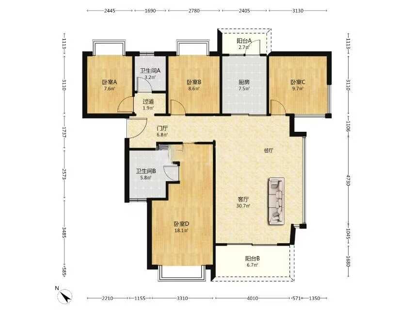 4室2厅2卫2厨2阳